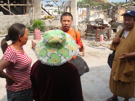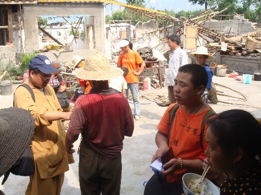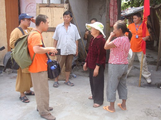 随着深圳佛协赈灾志愿队分发物资和送医施药赈灾工作的展开,进一步从乡镇深入到偏僻村寨,不仅为那里的受灾乡亲送去必要的生活物资,而且也给他们送去防疫药品和简单医疗(每一组志愿队都配备随队医生。