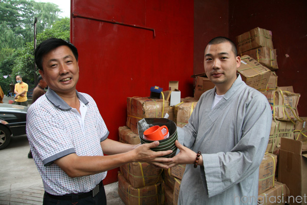 绵竹的佛教活动场所在此次大难中受到重创,我们不仅选择帮助当地佛教界实施自救!也牵挂着同为弱势群体的当地其他宗教界人士和组织!深圳市佛教协会代表广东佛教界捐赠给绵竹市各个宗教场所一批杯碗,由绵竹市宗教局代为接收物资,并统一调配!该批物资共计一万余件,价值人民币约十万元!