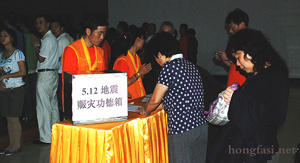 2008年5月21日晚,一百零二岁高龄的弘法寺方丈本焕长老亲自主持祈悼法会,本焕长老手系黄丝带点燃莲花灯为遇难众生祈福,愿他们蒙佛接引、往生净土。