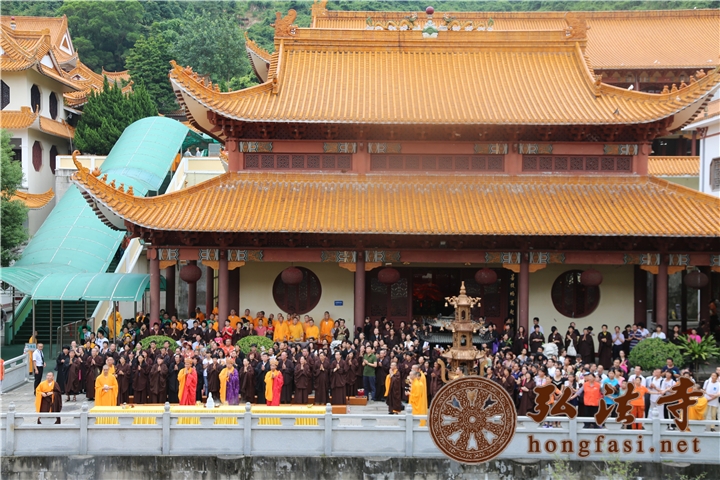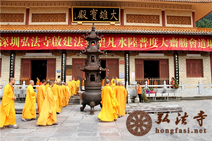 大雄宝殿外法师队伍整齐有序