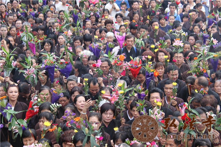 参与善信,手持鲜花,法喜充满