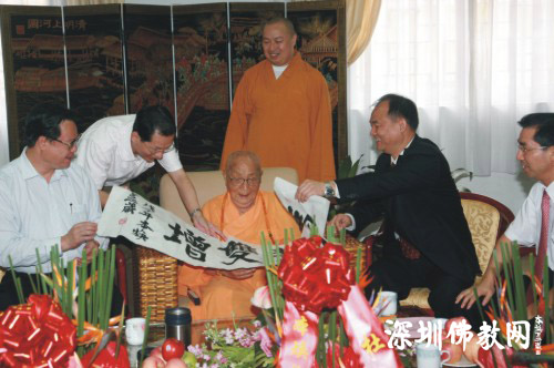 10月19日国家宗教局齐晓飞副局长,广东省委常委、统战部周镇宏部长,广东省民宗委陈绿平主任,深圳市委常委、统战部王毅部长为本焕长老贺寿。