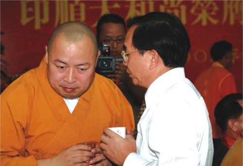 深圳罗湖区政府鲁毅区长与深圳市佛教协会赵利生常务副会长印顺大和尚升座庆典宴会上就座