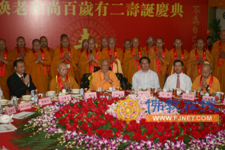 中午,在经堂三楼举行寿筵,海内外诸山长老大德,国家宗教局副局长齐晓飞、广东省委统战部部长周镇宏、深圳市委统战部部长王毅、民族宗教局领导冯安群、姚任,罗湖区委书记刘学强,区委副书记、区长鲁毅,深圳市佛教协会副会长赵利生居士等千余人共同出席寿筵。