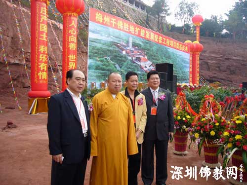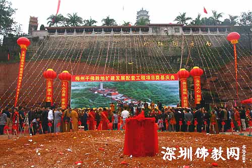 2008年11月23日,梅州千佛塔寺彩旗飘扬、鼓乐喧天、宾客云集。省市领导和社会各界近2000人参加千佛塔寺为完善丛林建设的配套工程奠基典礼。