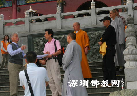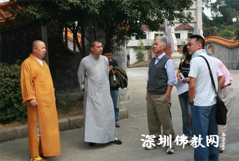 12月4日,深圳市佛教协会副会长兼秘书长、弘法寺方丈印顺大和尚、香港旭日集团杨钊居士一行数十人到宝安区弘源寺察看地势,就弘源寺二期工程问题做规划。