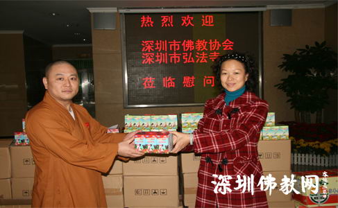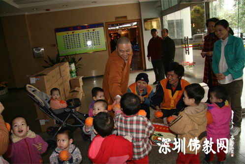 12月30日下午,受深圳市佛教协会会长、深圳弘法寺方丈印顺大和尚委托,市佛协与弘法寺一行为深圳市社会福利中心的孩子及老师送去水果及有关物品。
