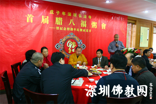参加弘法寺首届腊八福粥会的有市政协常务副主席姜忠、市天主教爱国会主席林国贞、罗湖区民宗局长李立笔、宝安区民宗局局长胡建武、仙湖植物园管理处主任李勇