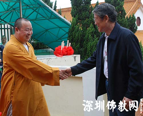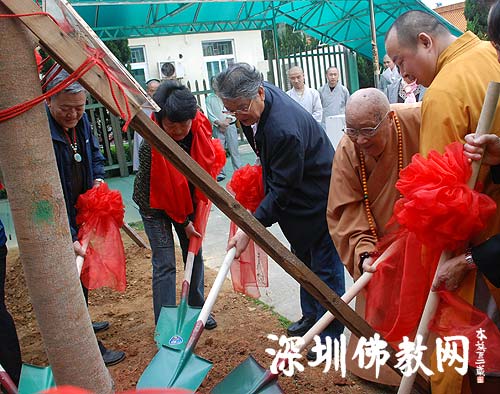 2009年3月的深圳,春风拂面,生机盎然;弘法寺佛香缭绕,游人如织。12日上午,弘法寺与往常一样,僧人们在早课后,禅修的进禅堂打坐,外寮的在客堂、斋堂、随喜功德处等地忙碌着,迎接着十方信众。9时,李铁映一行轻车简从,进入弘法寺内,以一个普通游客的身份考察了这座南方宝刹,参观法堂、方丈室、禅堂、大雄宝殿等处,对弘法寺的佛教文化展示给予了很高的评价并欣然题书。李铁映还以一个普通公民的身份,积极响应全国人大四次会议通过的《关于开展全民义务植树运动的决议》的号召,在弘法寺禅堂门前亲手种植菩提树。李铁映还有着党和国家领导人的身份,每年的植树节他都参加义务植树活动,自然有着率先垂范的作用。这次在弘法寺禅堂门前亲手种植菩提树,还有着特殊的意义,这与佛教众生平等,自然环保,和谐亲善的理念融为一体,在佛弟子的心中种下了永远常青的菩提树。
