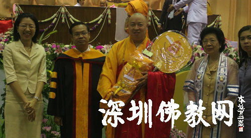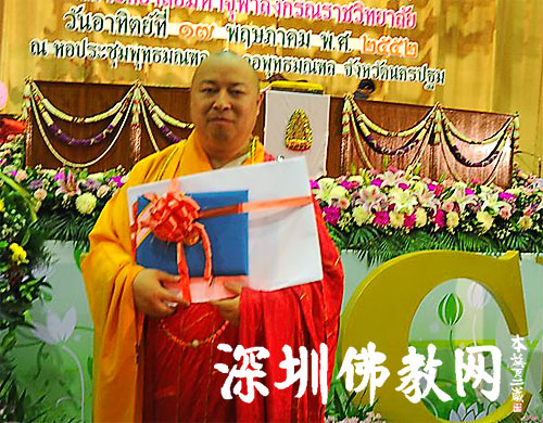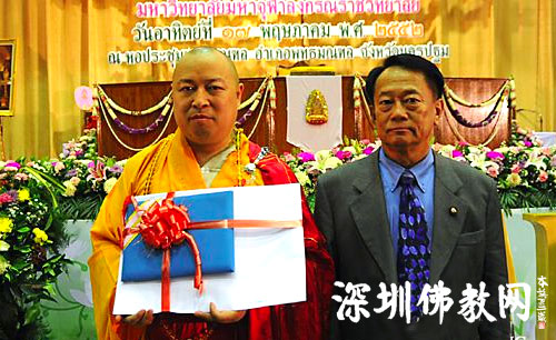 深圳佛教新闻网讯:2009年5月15日至20日,印顺大和尚应邀率团访问泰国,接受由世界著名佛学院——泰国朱拉隆功大学颁发的佛学博士学位。