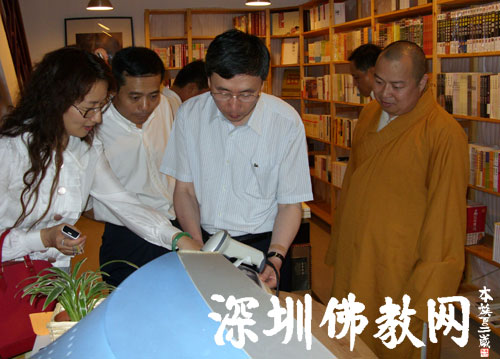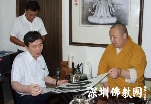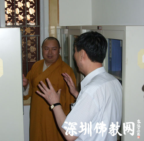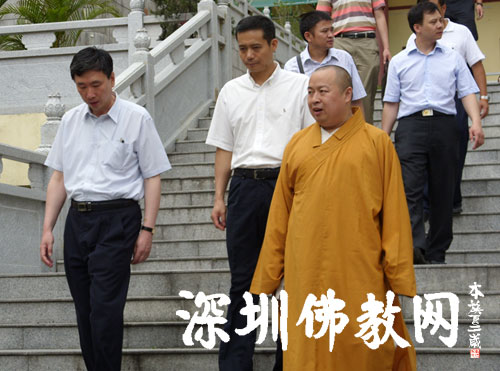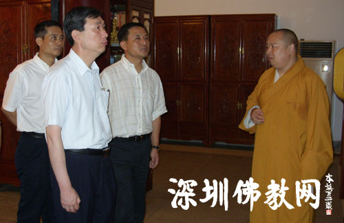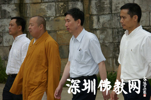 深圳佛教网讯:2009年6月8日下午,中央统战部副部长黄跃金一行亲临弘法寺指导工作,深圳市统战部副部长姚任、弘法寺方丈印顺大和尚陪同参观并介绍寺庙发展及有关建设情况。