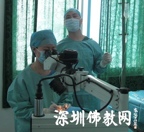 姚晓明博士等深圳市眼科医院医护人员在进行手术(益阳队,23日)