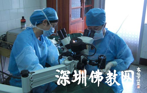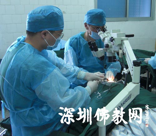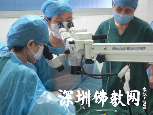 深圳市第二人民医院眼科主任司马晶博士后等医护人员正在进行手术(衡阳,26日)