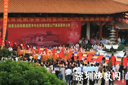 深圳佛教新闻网讯:2009年5月25日,佛教界又迎来了一件盛事--顿勇法师荣升莲开净寺方丈。莲开净寺是佛门泰斗本焕长老创建的第六个寺院,并且是唯一的尼众寺院,在此次的升座仪式上,本焕长老衣钵传人、弘法寺方丈印顺大和尚亲自为顿勇法师送座。弘法寺义工团百余名义工提前三天分别乘坐三辆大巴车,前往韶关南雄莲开净寺为法会做各项准备工作。顿勇法师荣升莲开净寺方丈法会一切圆满。