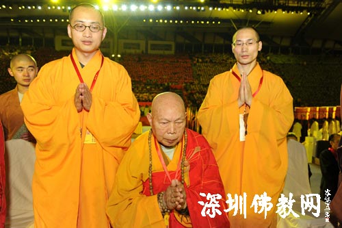 中国佛教协会会长一诚长老、中国佛教协会咨议委员会副主席惟贤长老、中国佛教协会副会长净慧长老、澳门佛教总会会长健钊长老、山东佛教协会会长明哲长老、山西佛教协会副会长妙江法师、二祖寺方丈绍云长老、云南佛教协会副会长东宝·仲巴仁波切、觉光长老、香港宝莲寺方丈智慧长老、广东省佛教协会会长民生法师、广东佛教协会副会长宏满法师、深圳佛教协会会长印顺法师、中国佛教协会常务理事心印法师、广东佛教协会副会长宏满法师、等来自两岸四地的十八位法师参加弘法寺举行的千僧祈福法会,祈福国泰民安。