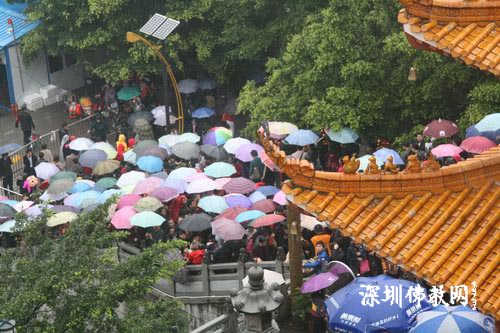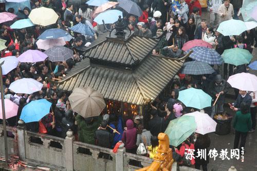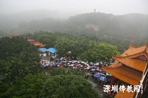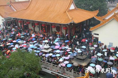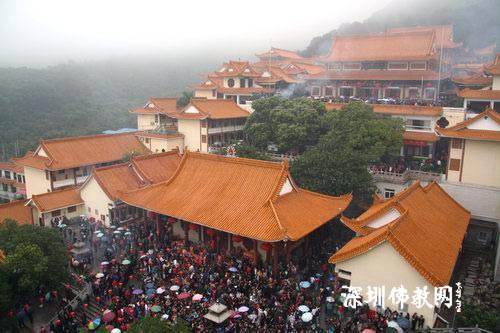 同样是凌晨四点多,方丈印顺大和尚和寺庙的僧人们就起来到大雄宝殿诵经,直到天明。伴着浑厚、 深沉的钟声,诵经声穿过一道道院落至仙湖植物园门口,祈愿世界和平,国泰民安,一年风调雨顺。