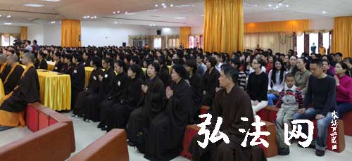 弘法网讯:4月11日,普贤十大愿王《佛经讲座》如期在弘法寺经堂举行。常住法师、“八关斋戒”的戒子们及广大信众参加了这次活动。