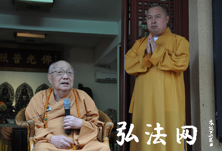 讲经结束后,大和尚带领信众一起参拜本焕老和尚。老和尚慈悲地给大家作了开示。(图:李新,罗志强(特邀))