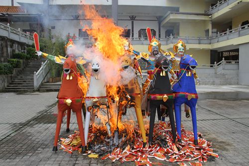 弘法网讯:2013年8月20日下午2点,弘法寺连续七天的“法界圣凡水陆空普度大斋胜会”功德圆满,举行了最后盛大庄严的送圣仪式。