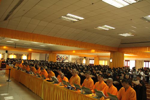 《盂兰盆经》有云:“是佛弟子修孝顺者,应念念中忆父母乃至七世父母。年年七月十五日,常以孝慈忆所生父母,为作盂兰盆施佛及僧,以报父母长养慈爱之恩。”是时,法会进行了净坛诵经、上兰盆供、众僧受食诸仪节,庄严隆重。巍巍赞颂声中,引众发菩提心,以殊胜仪轨与诵经念咒功德超度诸有情过去七世父母,代为现在父母普利十方法界众生,并祈求现在父母身体健康,滋养我们的孝顺之心。约近千善信光临法会,或随喜供佛,或虔诚斋僧,以三宝功德超拔一切有情。法会历时3个小时,参与者无不法喜充满。