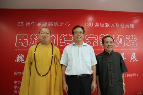 弘法网讯:2013年8月30日上午,深圳雅昌艺术馆隆重举行魏达志书法作品慈善展暨弘法寺义买善款捐赠深圳市清真寺建设仪式。与以往的艺术展览、慈善活动不同,本次活动可说是深圳市民族界、宗教界、艺术界和学术界的一件大事,是民族团结宗教和谐共创典范的经典之作。