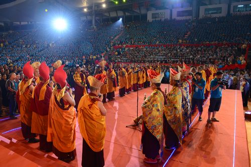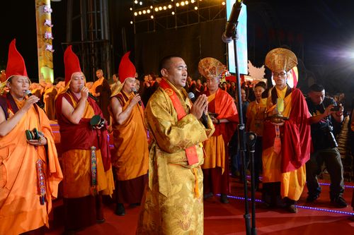 2013年10月24日19点,一场盛大的祈福法会,在深圳东部华侨城天机水剧场隆重举行。气势恢弘,感天动地!作为第五届深圳佛教文化节的重点内容,“知恩报恩,护国息灾——2013年万众普佛供灯祈福大典”,吸引了来自两岸四地及海外的诸山长老、近千名僧众和近万名信众一同参与,共襄盛举,祈愿祖国昌盛、社会和谐,祈愿世界和平、人民安乐,祈愿本焕长老乘愿再来、舍利赐福。