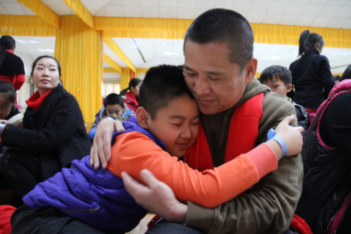 一条蓝丝带、一份浓浓的爱挽救了一个幼小的生命。邓老师动情的讲着这个故事,每个人内心都有柔软的一面,大家最返璞归真的一面被激发起来,真情流露,泪水肆意流淌。义工们给大家派发了四条蓝丝带,大家把蓝丝带结成一个个美丽的蝴蝶结,一丝不苟地把手中的蓝丝带系在最重要的人手上,深深拥抱,表达出了自己的感恩与爱心。