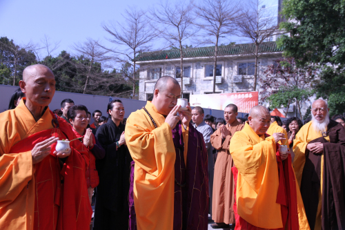 深圳万佛禅寺隆重举行了祈福洒净仪式。仪式由中国佛教协会副会长、弘法寺方丈印顺大和尚主法,一如长老、印钦法师及万佛禅寺法师们共同护持,十方善信随喜参加了这一殊胜仪式,法喜充满