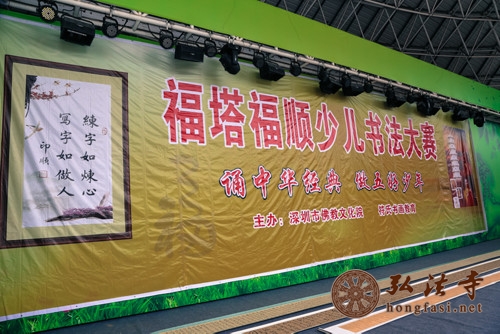 弘法网深圳讯:2015年11月8日,福田福塔举办了一场主题为“发扬艺术之光,传承书法风采,共创文化生态园林”的福顺少儿书法现场大赛。此次举办书法大赛的目的是为了传播中国传统文化,让少儿领略佛教的艺术精神精神。中国佛教协会副会长、海南省佛教协会会长、深圳弘法寺方丈、福田福塔住持印顺大和尚为此次书法大赛发来祝福。